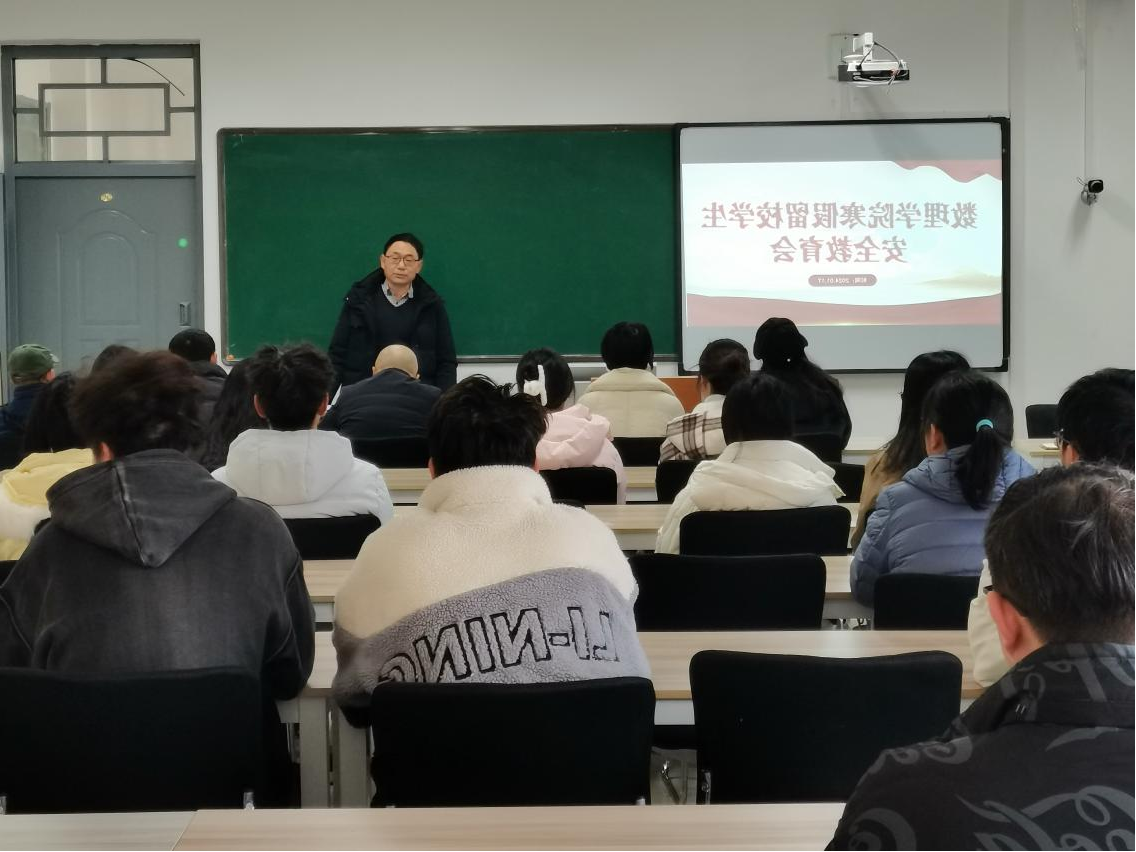 为了进一步强化寒期留校学生的安全防范意识,确保留校学生度过一个平安、愉快、充实的寒假,1月17日,数理学院寒假留校学生安全教育会在笃行楼417教室举行,学院党委书记张学林、党委副书记、纪委书记杨亭、学工口全体老师、实验带队老师、全体寒假留校学生参加会议。