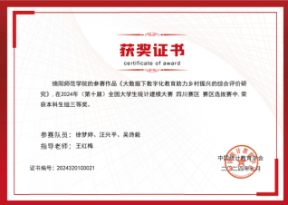 绵阳师范学院2024年(第十届)全国大学生统计建模大赛获奖名单