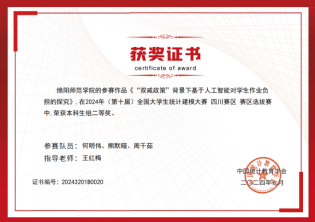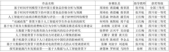 2024年(第十届)全国大学生统计建模大赛自2月开赛以来,全国共有21386支队伍提交论文参赛,评出604支队伍入围国赛。经过校赛、省赛、国赛通讯评审、现场会议评审和现场答辩,我校荣获全国三等奖1项、以及四川赛区一等奖2项、二等奖1项、三等奖6项。